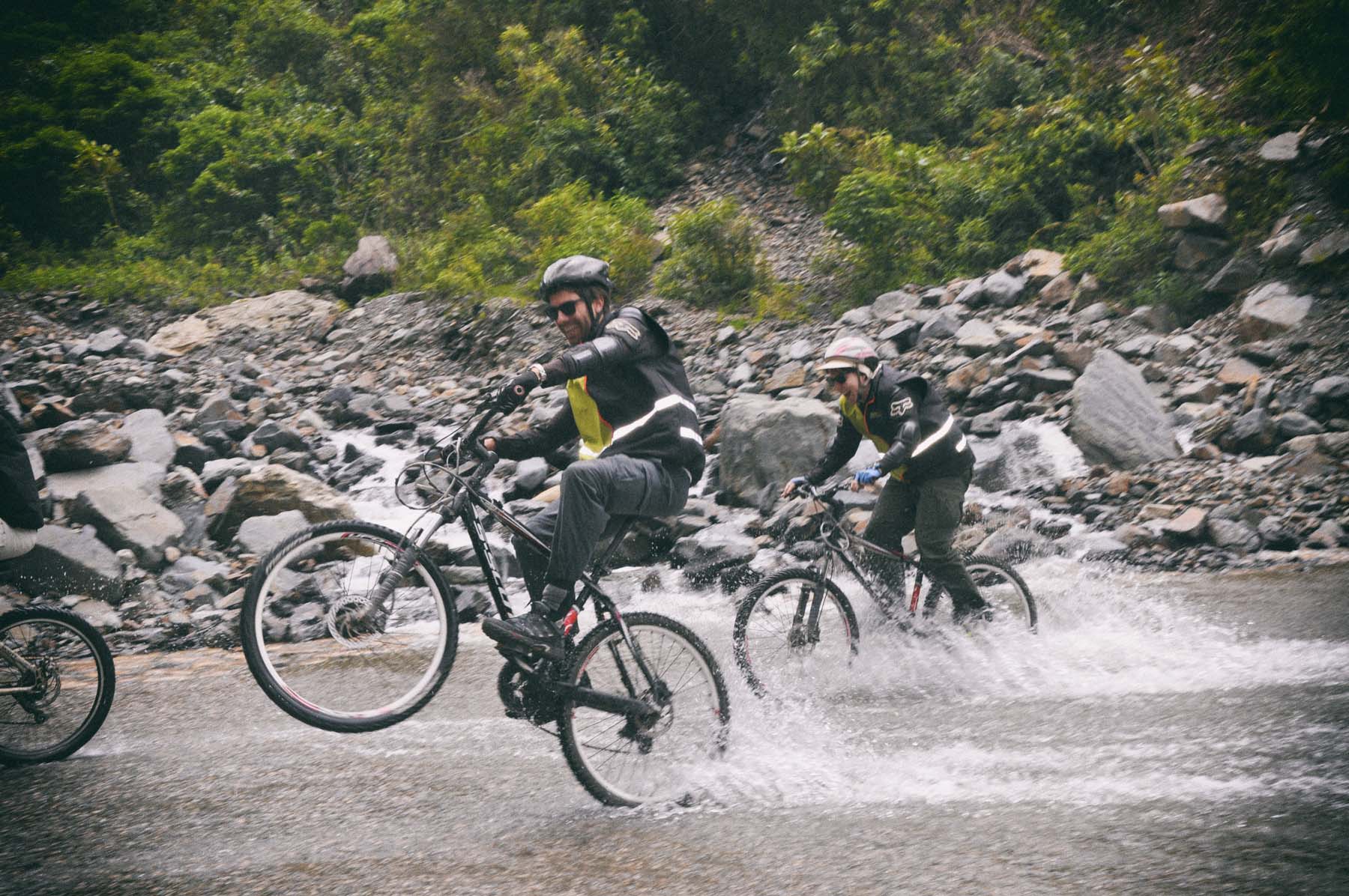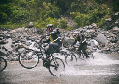 - Bicicletas de montaña con suspensión completa, cascos y guantes.