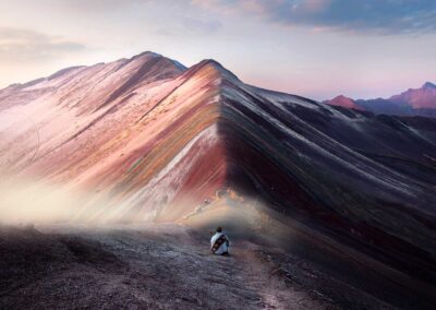 En la mañana de 4:00 a 4:30 a.m., pasaremos a recogerlo a su hotel en Cusco para realizar el viaje con destino a la Montaña de 7 Colores, ubicada en la parte sur de la región de Cusco, desde el inicio viajaremos durante 3 horas aprox. en transporte turístico, primero pasaremos por el pueblo de Quiquijana, para después seguir por Cusipata, y después llegaremos a Chillihuani, lugar donde tomaremos el desayuno, después continuaremos viajando hasta llegar Phullawasipata, lugar donde empezaremos nuestra caminata de 1 hora hasta el punto más alto de la Montaña de 7 Colores, durante este trayecto tendremos la oportunidad de ver las distintas variedades de camélidos sudamericanos, paisajes hermosos y aves, llegado a la Montaña de 7 Colores, tendremos tiempo libre para tomar fotografías de este lugar enigmático. Después, continuaremos con nuestra caminata de retorno hasta el punto de inicio, luego nos dirigiremos en transporte turístico a Chillihuani, donde haremos una parada para el almuerzo, después retornaremos a Cusco, donde llegaremos a las 5:00 p.m. aprox.